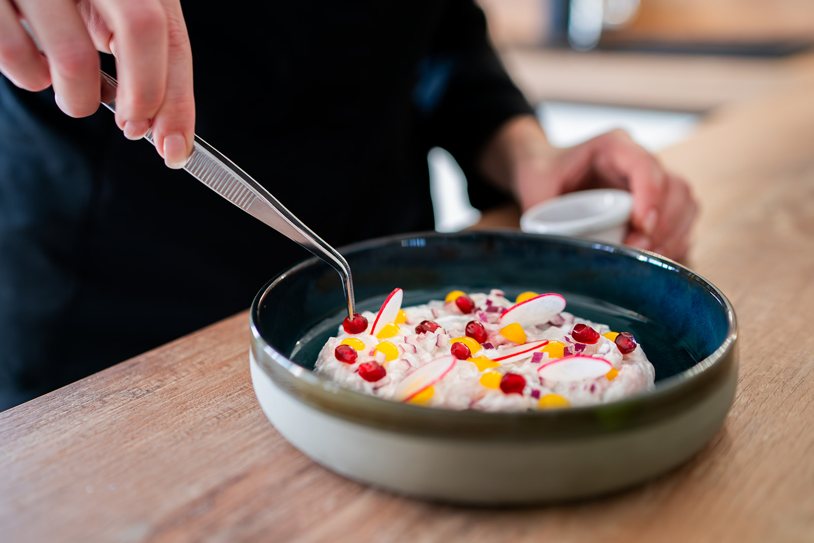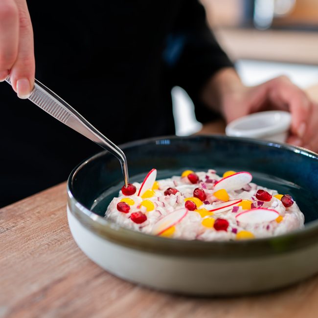 Les menus sont spécialement conçus par la chef à domicile pour répondre à vos envies et à l’occasion que vous célébrez en mettant en avant des produits frais et de saison.